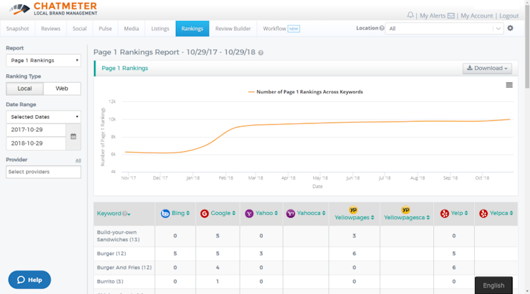 Chatmeter is a social media management software designed to help businesses in the retail, automotive, healthcare, and other sectors manage listings, reviews, social media posts, and local pages. Administrators can create, update, optimize, publish, monitor, and protect listings from duplicates in bulk and manage temporary closures.