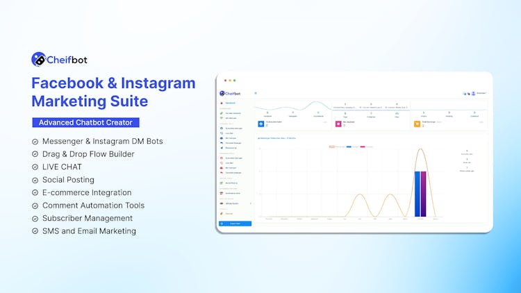 Cheifbot is a cloud-based automation platform for social media marketing, eCommerce, and restaurant management. Key features include chatbot capabilities, integrations, drag and drop flow builder, notifications, and AI-enabled insights.