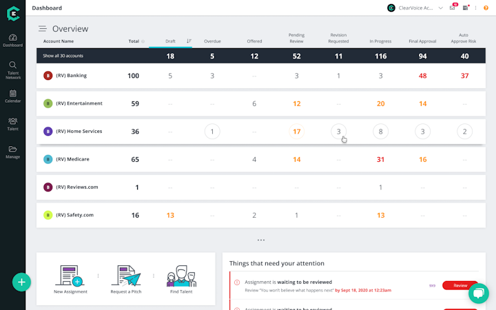 • Issue change requests and approve final copy, while also ensuring that freelancers are paid – all within the single ClearVoice platform.
