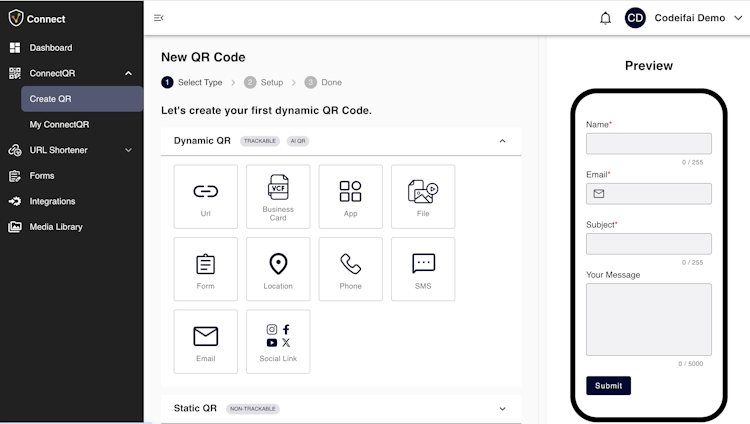 Connect QR is a powerful and customizable QR code generator that empowers businesses and individuals to engage with their audience in a smarter, more efficient manner. The platform offers a comprehensive suite of features designed to elevate the QR code experience, from free static codes to dynamic solutions that can be tailored to specific messaging and tracked for performance.