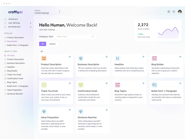 Craftly.AI’s user interface