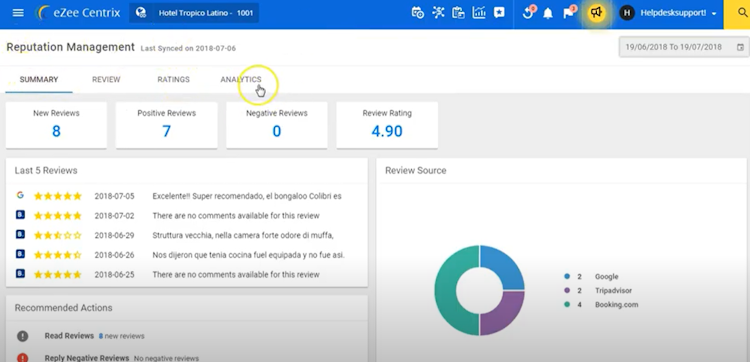 Sources may include travel websites, agencies, and metasearch engines, like TripAdvisor, Booking.com, and Trivago. Once the hotel links its accounts across the web, users can access and track reviews to obtain an overview of the review count for each website.