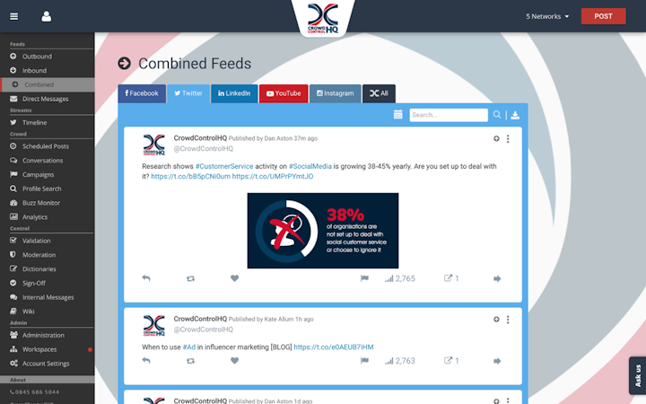 From engaging, on-brand social media marketing communications, to fast and efficient social media customer service, CrowdControlHQ takes the complexity out of your social media efforts. Manage all your social media in one place, in a controlled and coordinated way.