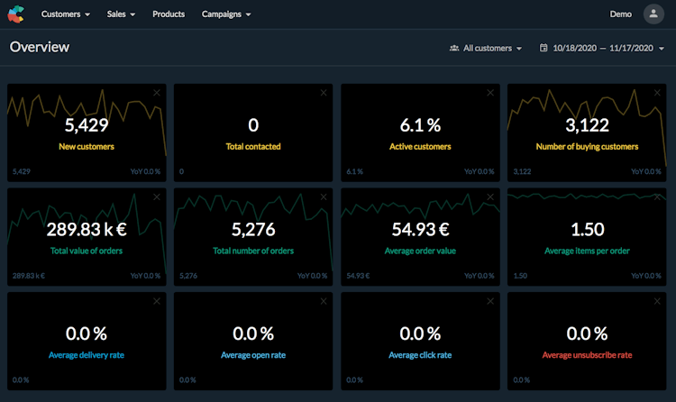 Custobar allows enterprises to find and segment customer data by preference, geography, product interests, or other attributes. Its built-in 360-degree customer view functionality lets marketers add notes, edit tags and marketing permissions, and gain visibility into customers’ profiles, transaction history, and journey via KPIs and statistics. Teams can also design customizable forms to communicate with clients, record data like address and name, and validate and store the information in a centralized repository.