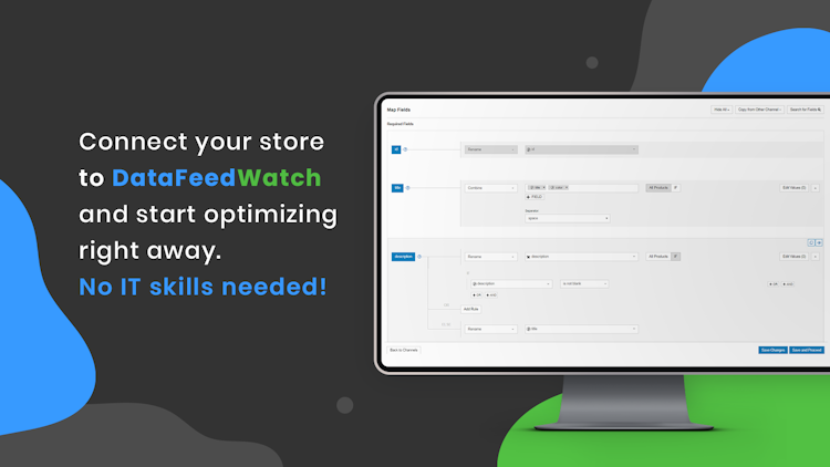 DataFeedWatch can easily optimize your data feed and let you advertise on different shopping channels like Google shopping, Facebook, Instagram, Pinterest, Amazon, eBay, Bing, Shopzilla, Criteo & more! It makes the products more visible and helps to increase sales! This tool also shows the performance of each product on every channel: poorly performing products can be removed with a single click to boost the overall campaign ROI. With this app you can do almost anything to tailor your feed to your commercial goals: add missing data, add custom labels, combine fields, assign the exact (sub-sub-) category and exclude products. DFW app lets you merge and unmerge your feed based on the channel requirements. DataFeedWatch is intuitive and easy to use. We accept different formats of the data that you want to import. Furthermore we can integrate and connect with many eCommerce platforms like Shopify, Magento, Woo Commerce, PrestaShop, Lightspeed and more.