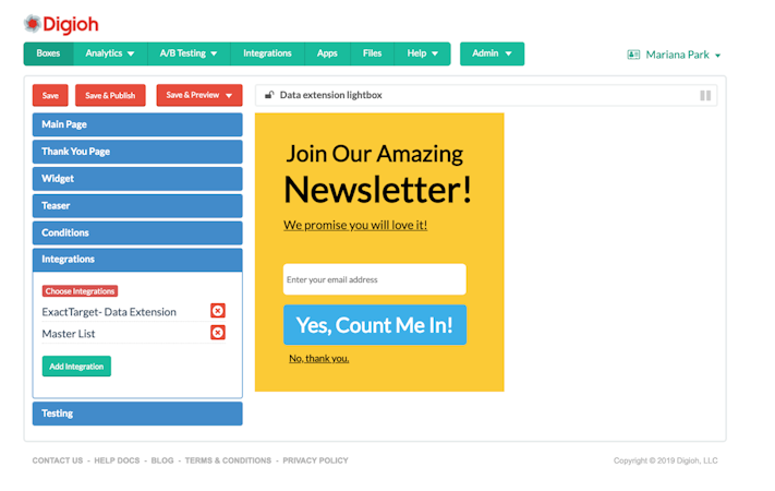 Digioh is designed for digital publishers and e-commerce stores that get several thousand to millions of pageviews per month and have tight list-building targets. Our customers need a powerful web form solution that integrates with their ESP, CRM, or marketing automation software. We specialize in custom back-end integrations to Salesforce Marketing Cloud, Commerce Cloud, and more.