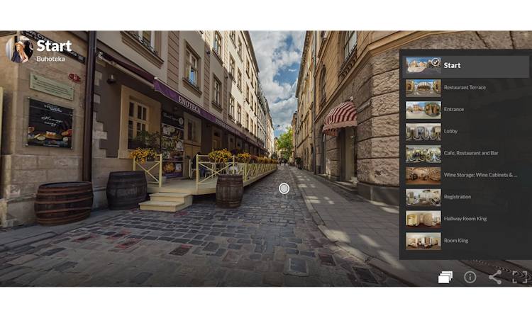 DiveIn Studio helps businesses create and design detailed floor plans, enabling virtual tour visitors to quickly access and navigate through various layouts. It lets users attach external links or reference documents with images and modify virtual tours in real-time. Real estate managers can also add additional information in multiple sections, including property description, address, or agents’ contact details.
