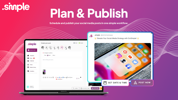 The product's key features include a planning and publishing module for post scheduling, an AI assistant that can write, optimize, and improve social media texts, and a social calendar to keep track of content planning. DotSimple also offers a content discovery feature that helps users find and curate trending content from platforms like YouTube, Instagram, and TikTok, as well as a social media inbox to manage all comments and messages centrally. The tool's collaborative release processes enable teams to optimize workflows, while the best time to post feature ensures that content reaches the audience at the optimal time.