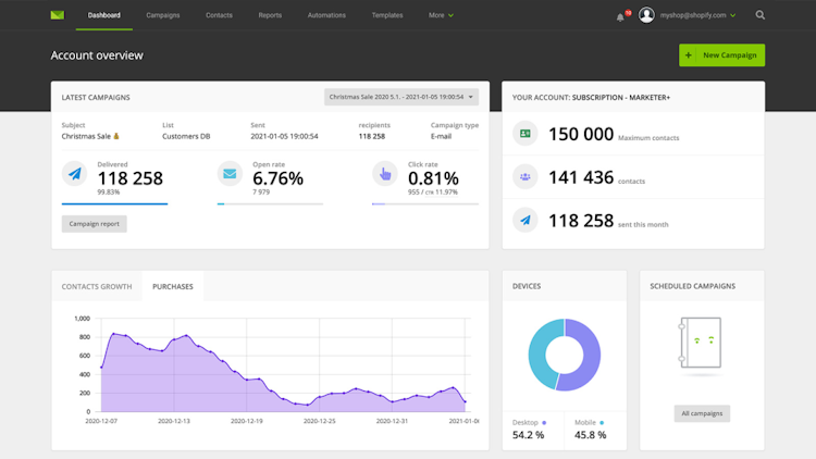 Automations & Free automation templates - Set up automated campaigns and let them work for you. Use templates of the most popular automations - welcome series, discount on the first purchase, abandoned cart and more.