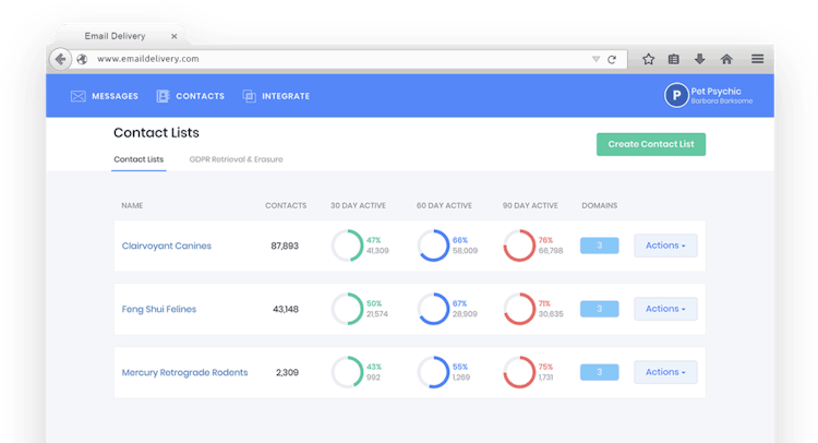 EmailDelivery.com’s user interface