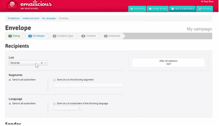 • Emailicious allows users to generate customized content, and then plan and schedule emails to send to subscribers.