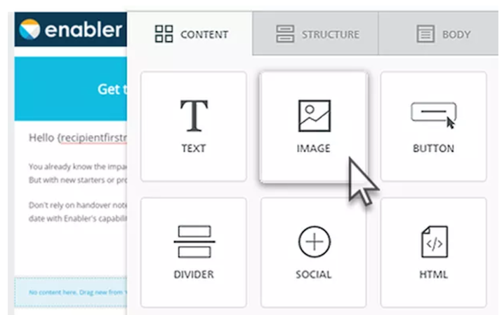 With Enabler’s drag-and-drop, WYSIWYG editor, users can create mobile-responsive email templates. Custom colour palettes allow users to design templates which match the brand or style of their business. Enabler’s built-in image library grants users access to over 500,000 copyright-free stock images. Users can also upload and edit their own images and GIFs using Enabler’s photo editor. Features such as dynamic content, smart segmentation, merge tags, and trackable custom links allow users to personalize and target campaigns.