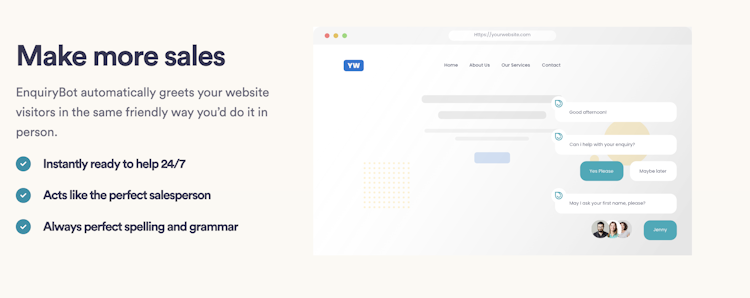 A UK-based company EnquiryBot is a custom-built software company which assists businesses by organising all aspects of enquiries in one easy-to-use system. A customisable automated responsive chatbot and easy-to-use enquiry management system that automatically greets website visitors and with pre-qualified questions can help gain better quality leads so you can track, manage and respond to all customer enquiries 24/7.