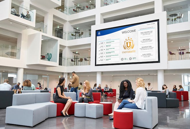With a library of ready-to-use templates, the customizable designer tool allows you to create unique designs that reflect your brand. Easily incorporate web page feeds, videos, live streaming, and television into your displays with the third-party integration feature. Keep your digital signage content organized and up-to-date with the dynamic playlists and tables feature. Plus, the eco-friendly power management feature allows you to save energy and costs by scheduling on and off times for specific displays.