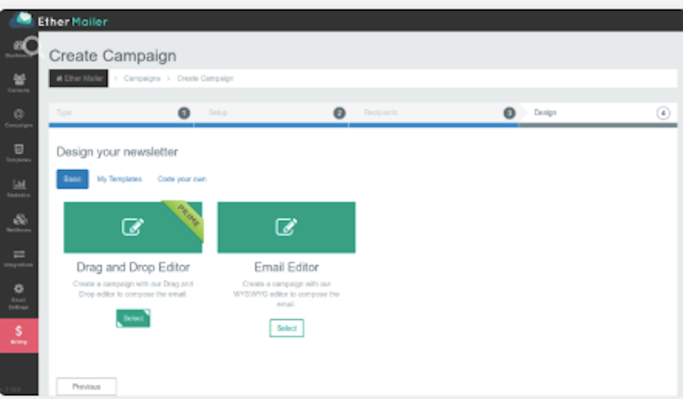 Ether Mailer is an email marketing solution that enables users to create and send marketing emails and newsletters to promote businesses and products using a range of features including a drag and drop, email and HTML editor, contact management, subscription form builder, and campaign statistics. Ether Mailer enables users to create responsive emails in a few steps without technical knowledge.