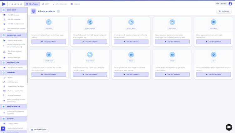 FinaLeads is a comprehensive B2B lead generation and email marketing platform that combines AI-powered technology with cloud-based infrastructure to provide a complete solution for businesses seeking to expand their customer base. The platform grants access to millions of verified business contacts, enabling users to target ideal prospects and convert them into loyal customers. At the core of FinaLeads lies a potent lead generation engine that continuously updates an expansive database with new business contacts sourced from various channels. Each lead is equipped with verified contact details, including email addresses, phone numbers, and social media profiles.