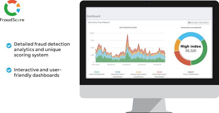 FraudScore's clients are ad networks, direct advertisers, agencies, and more. FraudScore analyses ad traffic quality, and detects numerous ad fraud types. FraudScore solutions cover ad fraud prevention and detection for CPA, CPI, CPM, CPL, and CPC campaigns.
