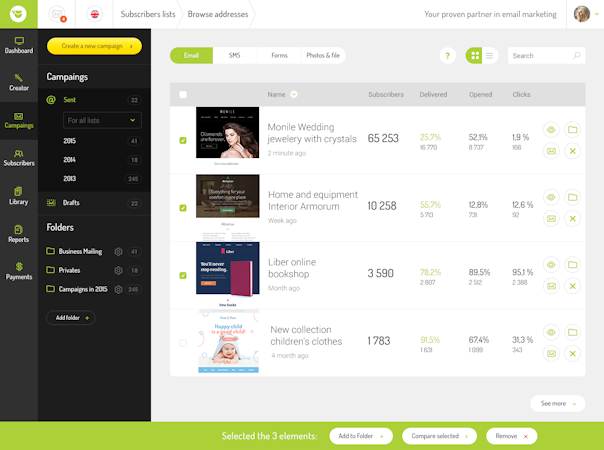With FreshMail users can easily manage all their subscriber lists. Users can import all their contacts from .cvs, .xls and upload from Basecamp and Google. Users can also track engagement with their emails - following clicks, viewing the number of opened messages, as well as seeing the location of subscribers. The software also automatically detects and removes duplicate content.