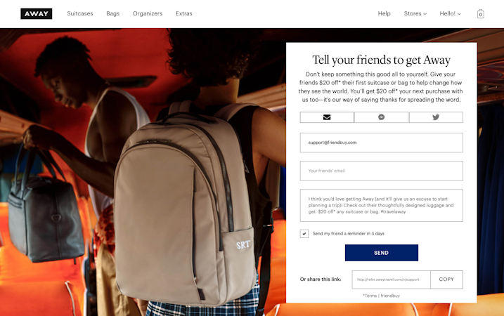 The application enables marketers to activate referrals websites and mobile apps using call-to-action (CTA) buttons that encourage customers to share products via links. Friendbuy automates the distribution of different rewards such as coupon codes, loyalty points, account credits, and gift cards to customers. Fraud detection algorithms evaluate the associated cost of each purchase to determine reward eligibility according to flexible criteria. The system also helps professionals drive targeted campaigns and track performance in real-time.