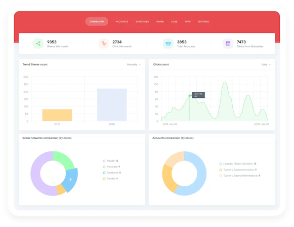 Measuring KPI: The social media scheduler tracks the performance of each added network and account via scheduled posts.