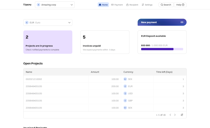 - API integration: Together with our team, you can personalize your experience with Gigapay API so that you can take advantage of the full power of our solutions. Deploy in less than a week.