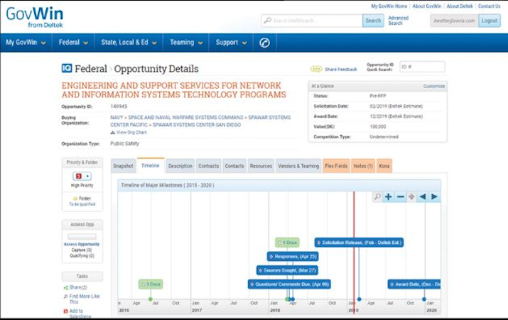 GovWin IQ is a cloud-based, US and Canadian government contracting intelligence solution designed to help organizations manage public sector opportunities and devise strategies to procure deals and stay ahead of the competitors. The platform enables users to store information about contracts, research and support in a centralized repository for future reference.