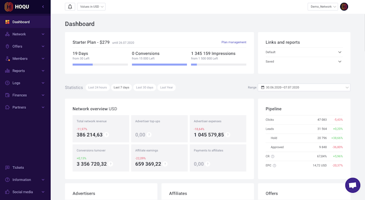 HOQU platform also lets affiliates receive invitation codes to access private networks, exclusive offers, and individual payouts. The affiliate and advertiser dashboard lets users generate reports and visual analytics to gain insights into lead generation processes, conversion rates, return on investments (ROI), and overall profits. It also allows users to conduct data migration from external affiliate applications, whilst maintaining uptime on existing offers and campaigns.