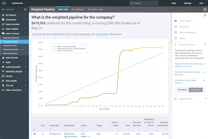 InsightSquared’s user interface
