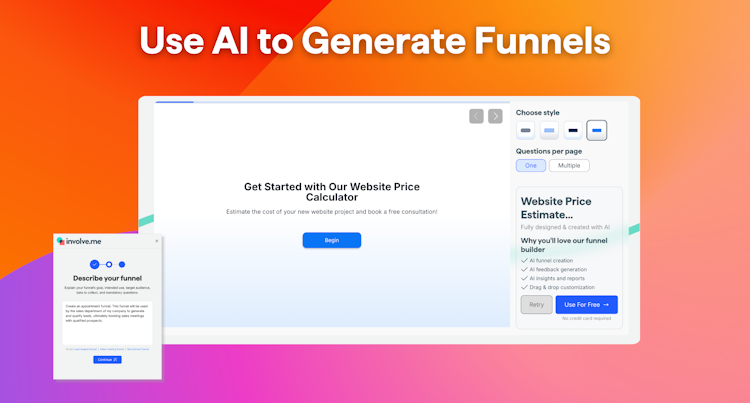 involve.me is a powerful no-code platform that enables businesses to build funnels designed to engage, qualify, and convert website visitors into high-quality leads.