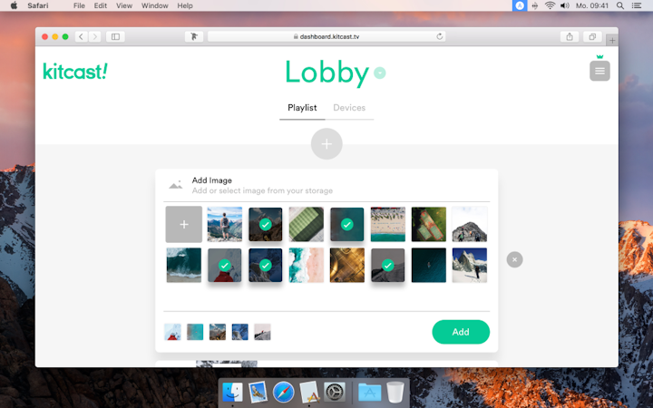 Businesses can deploy their creations across multiple devices and locations, and manage them all from the Kitcast platform. Users can choose to display different content on different screens, depending on location specifics, or to synchronize all screens with the same information. Kitcast facilitates the creation of playlists for controlling the order in which content will appear, and playlists can be scheduled in order to manage the times at which different content will display on screens.