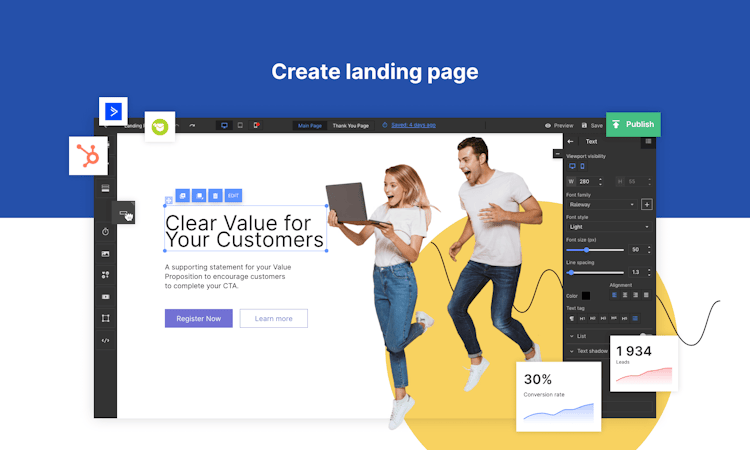 Landingi is a landing page program with key features that include a form builder, customizable templates, and more.