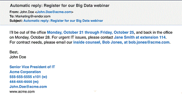 It derives format for business email addresses and links OOO (Out of Office) email to the specific marketing and sales campaigns.