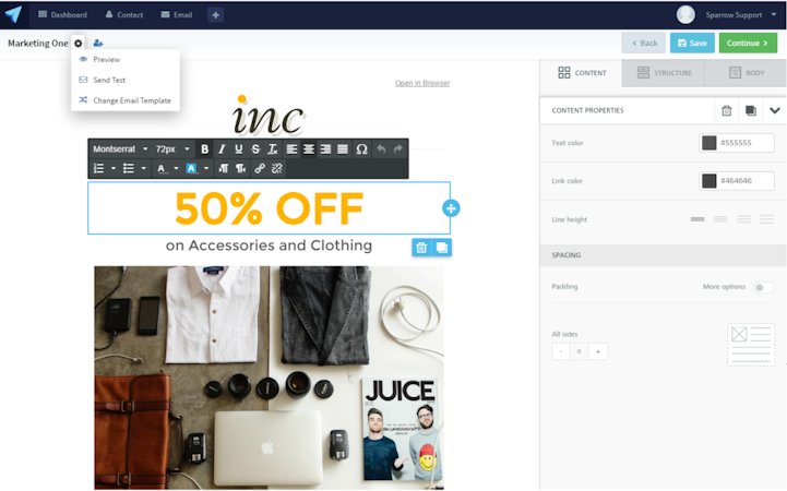 Users can run A/B tests on the entire email, or specific sections of the email, to help them find the winning formula for higher engagements.