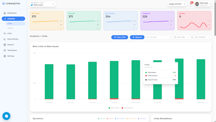 Link building tool that monitors links and track rankings