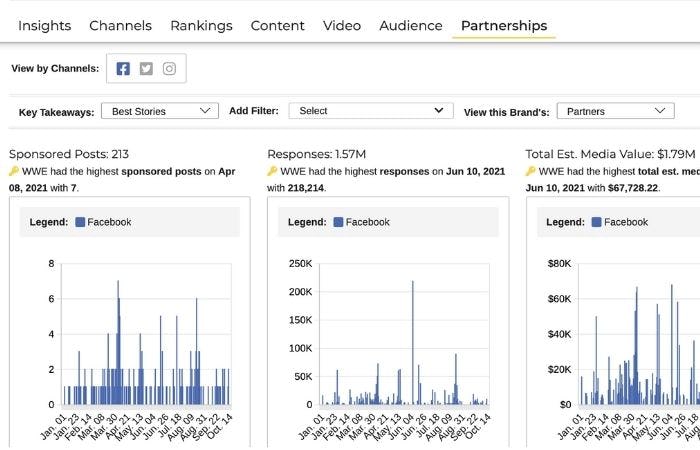 - Offers influencer and partner analytics to optimize influencer campaigns and sponsorship opportunities