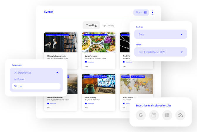 Localist was built for community managers and marketers. It is an easy-to-use, maintenance-free platform that doesn’t require coding. With extensive integrations and an API, the platform works with all of your existing tools, from your website CMS to your CRM, video conferencing, member management and community software.