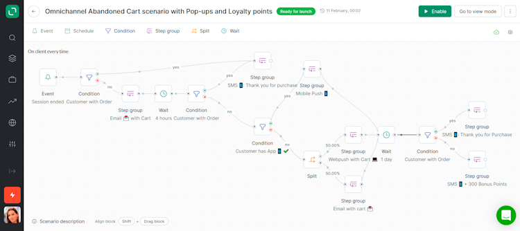 • Push, Messengers, and Chatbots: Fully synced campaigns, notifications, and transactional messages.