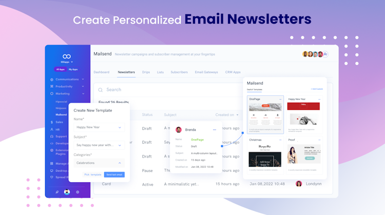 MailSend by 500apps is an email marketing software that allows you to deliver newsletters, manage successful drip campaigns, and create forms to improve open rates and engagement. MailSend puts your customers first, allowing you to send marketing emails and automated messages, develop targeted email campaigns, track and analyze data, and sell online.