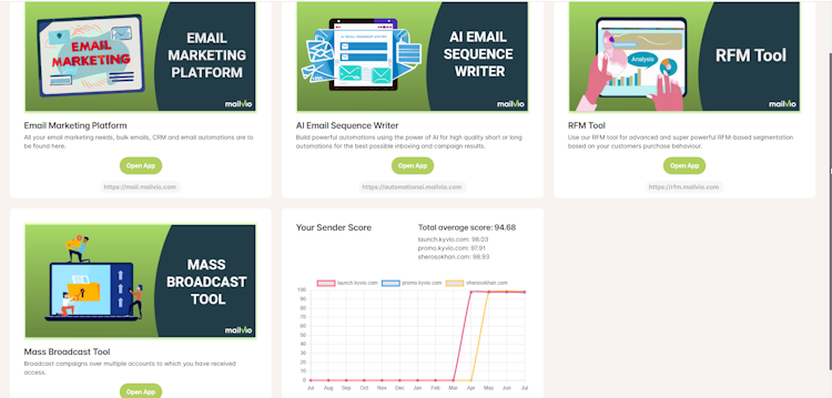 Mailvio's commitment to transparency is evident in its unique Sender Score Transparency feature, which shares the internal sender score per domain on the user's dashboard, along with a chart showing the score over time. This allows users to proactively monitor and improve email deliverability.