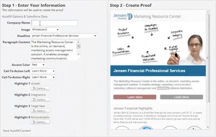 Users are able to customize and distribute a variety of marketing materials from a single storefront.
