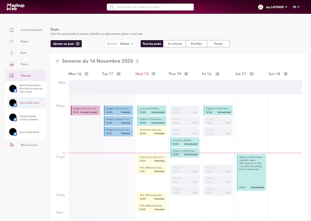 Mashup Web is a social media management tool designed to help businesses plan posts, automatically post content on channels, set up automated tags or mentions, link videos, images, and URLs as posts, and moderate content based on analytics. It integrates with several social media platforms including Facebook, Linkedin, and Twitter.