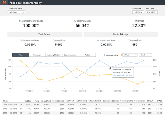The platform enables users to measure traffic, media investment, and conversion rates, providing visibility into campaign performance via visual reports. Teams can create independent Design of Experiments (DoEs) for channels/tactics such as Facebook prospecting, retargeting, catalog housefile, catalog rental, and more. Measured displays consolidated reporting data on a centralized dashboard, enabling managers to compare incremental contribution of media across online/offline channels. Plus, marketers can integrate results from DoEs with vendor’s performance reports to generate actionable insights.
