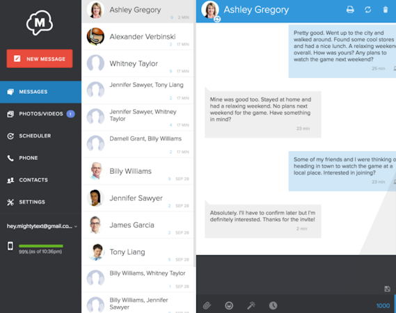 MightyText’s user interface