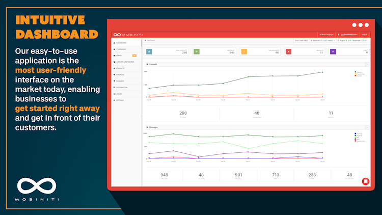 Mobiniti is an SMS marketing platform that helps engage new and existing customers through drip messages, targeted messages, feedback and reviews, mobile coupons, contests, and more. Automation tools enable users to schedule campaigns and personalized messages based on events, as well as send out timed messages such as after a contact joins a group, or a campaign is sent.