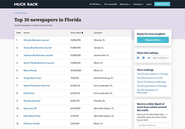 Muck Rack is a public relations management software that helps businesses find verified journalists, share personalized pitches, track media coverage, and report on campaigns. It includes a media database, which allows PR professionals to gain insights into journalists’ profile information such as articles, beats, latest tweets, preferences, and contact details.