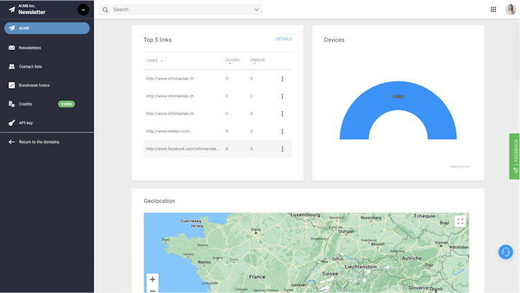 With our Infomaniak newsletter tool, you can send newsletters instantly, regardless of the number of recipients, with no subscription required. Customize your newsletters with free professional themes to enhance their impact, and enjoy optimal formatting for reading on any device, including tablets, smartphones, and computers. Preview your newsletters in real-time with our intuitive editor. A limitless solution.