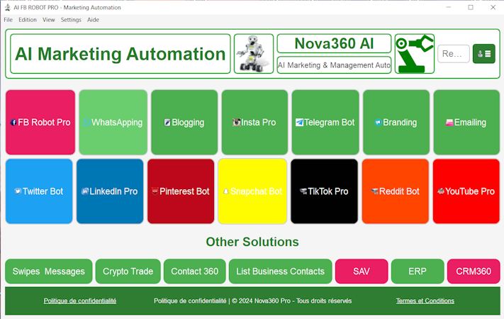- Customizable solutions: Tailor Nova360 AI’s tools to fit your unique marketing needs, with options to choose from multiple robots like FB Robot, Instagram Robot, and WhatsApp Robot.