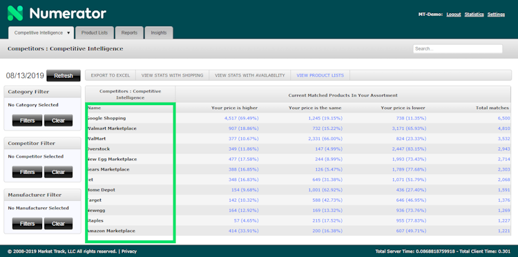 Numerator is a cloud-based market intelligence platform, which helps enterprises gain insights into customers’ interests and buying trends. Features include competition tracking, automated price monitoring, compliance management, benchmarking, and reporting.