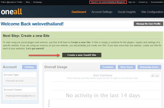 OneAll’s user interface
