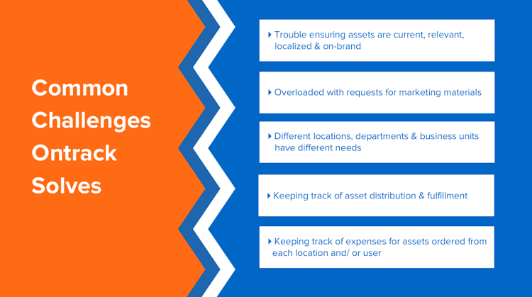 The Ontrack online portal provides marketing teams, sales teams, or nonprofit members with access to approved libraries of logos, content, and creative materials, including traditional and online advertising assets, sales assets and more, anywhere, and at any time. End-users also have the flexibility to customize assets to their region or audience by editing fonts, colors, text, images and sizes to keep marketing on-brand. Materials can be ordered directly from the online portal, and Ontrack handles the distribution to the designated vendors.